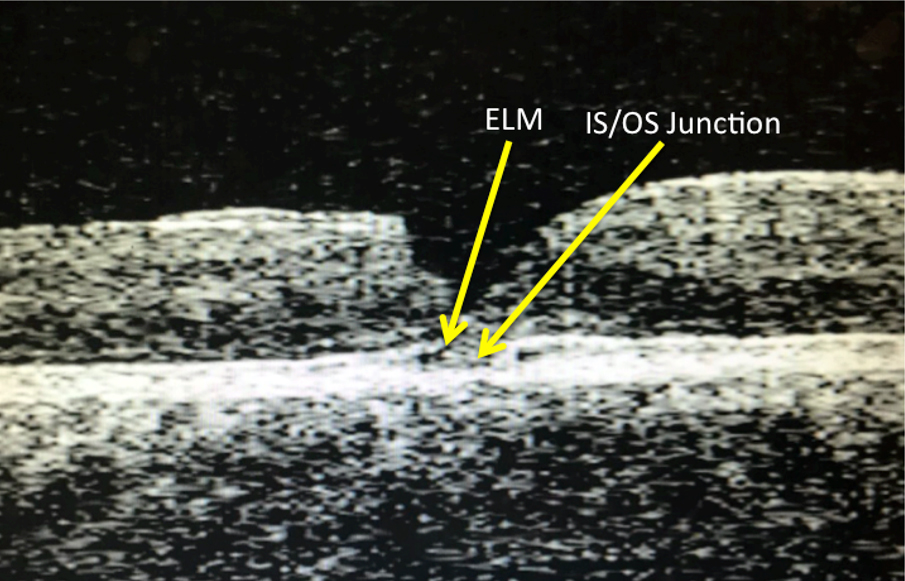 According to recent studies, a discontinued IS/OS junction was the most frequent lesion, found in 40% to 82% of patients within the photoreceptor layer, and was described as a marker of poor prognosis for visual recovery [17],[18],[19]. Lai and associates reported that the presence of one or more abnormalities among the ELM, the IS/ OS junction, or the Verhoeff membrane was correlated to poor postoperative BCVA [20]. In our study, IS/OS lesions were detected in five subjects eyes. Wakabayashi and his associates noted a disrupted IS/OS junction in 43% of 51 macula-off eyes and found that the integrity of both the ELM and the IS/OS junction was significantly associated with better visual outcome [19]. Final visual acuity in our study, did not differ between patients with simultaneous IS/OS and ELM disruptions and patients with IS/OS disruption and intact ELM. Terauchi et al also demonstrated that photoreceptor abnormalities persisted a long time after surgery. Twenty of 30 eyes (66.7%) had photoreceptor damage that was extended from the outer segments to the outer nuclear layer through the IS/OS [21].
